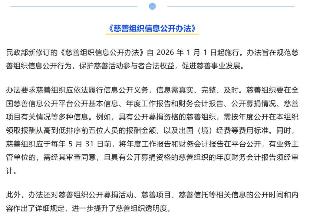:政策学习——多部社会组织与慈善组织新规2026年1月1日起施行
